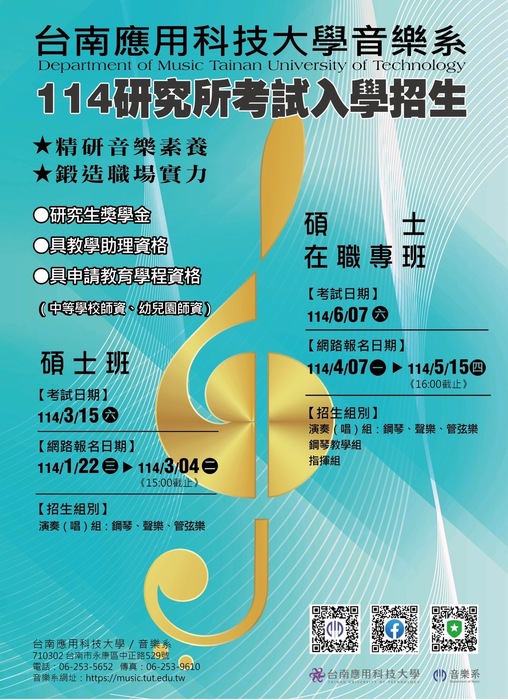 114學年南應大音樂系研究所考試入學招生